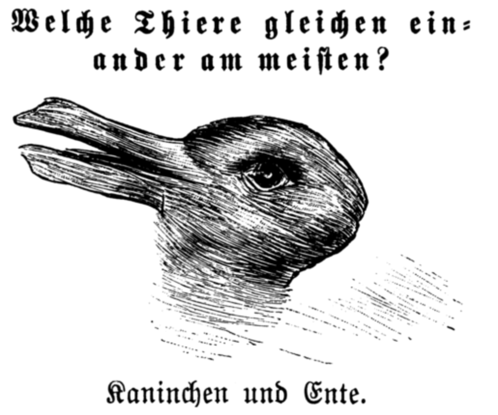 This image was first used by Wittgenstein and later, by Kuhn, in 1970, to illustrate his famous concept of paradigm shift. Different perception looking at the same image, on the left or right side. photo Wikimedia Commons.
