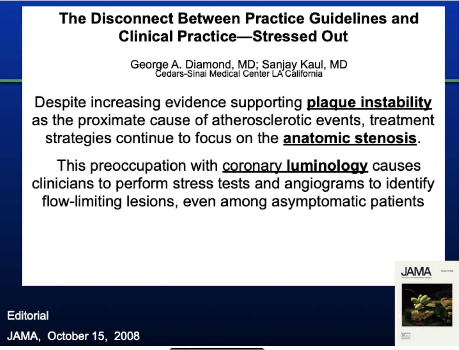 In a famous article, as early as 1995, Topol and Nissen were the first to express their concern about the so-called luminology and the dissociation between clinical and angiographic findings. (8)