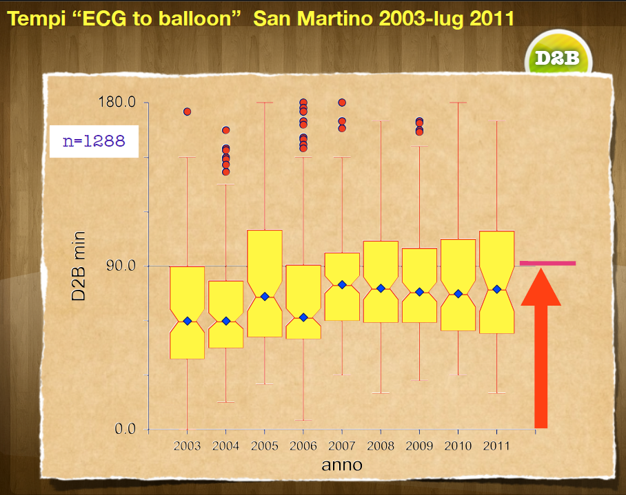 Ad esempio questa è stata la tendenza dei tempi, ECG-to-balloon e sintomi-to-balloon , al San Martino di Genova, dal 2003 al 2011: