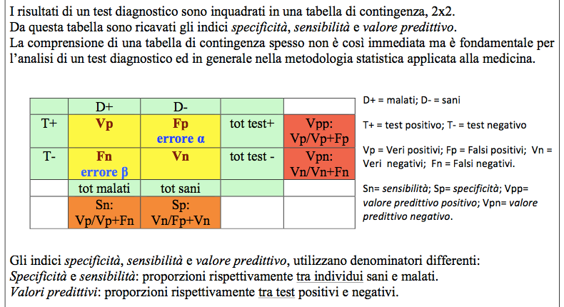 - Specificità, Sensibilità, e Valore Predittivo nei test e nei trial clinici. Foglio di calcolo